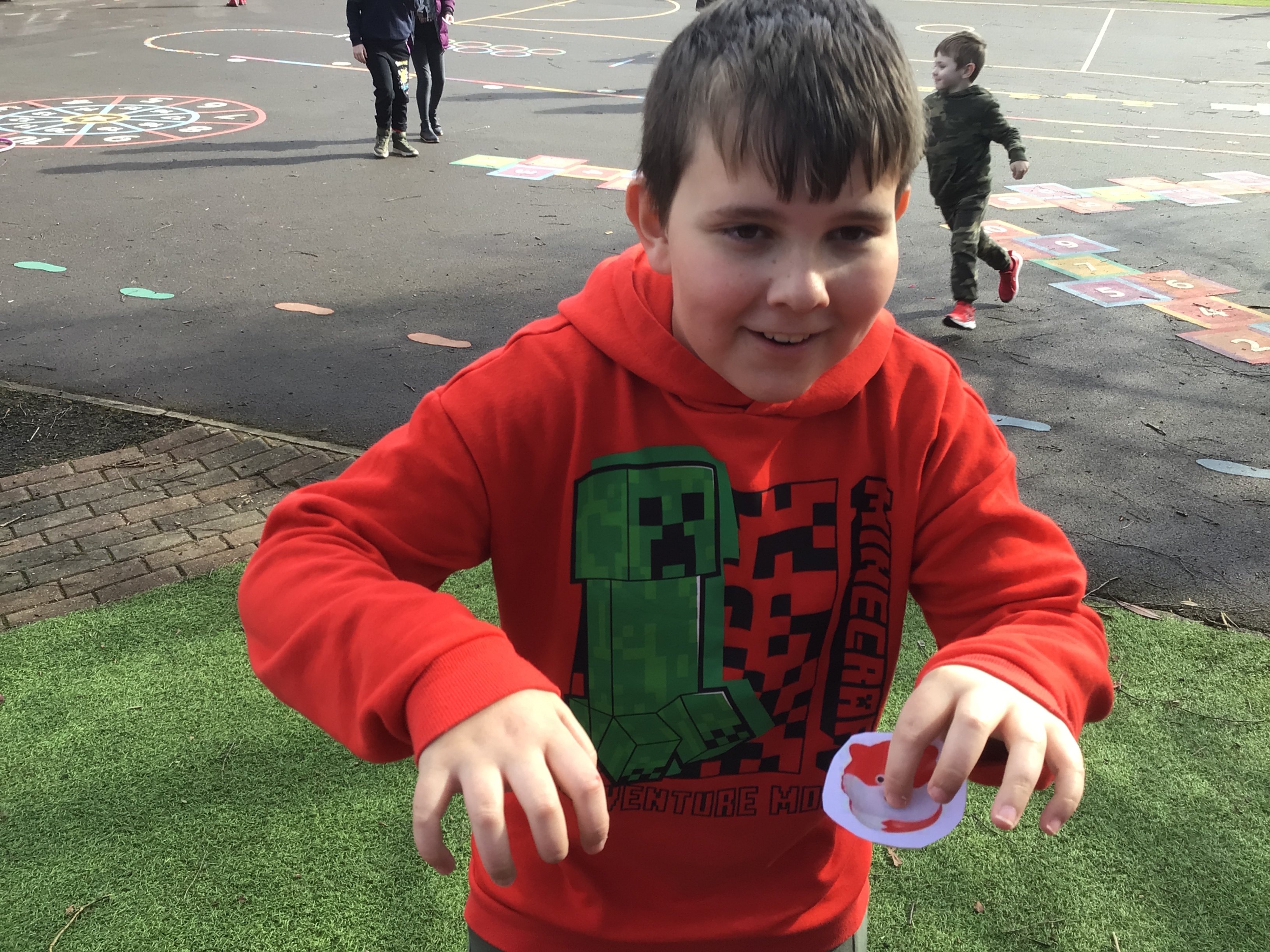 We had lots of fun today. Everyone dressed in red and green and School Council created a red nose hunt for everyone to join in with. Red Noses were placed around the playground, some had prizes, some had forfeits. We had some children winning raffle tickets and some dancing like dinosaurs, but everyone had fun!